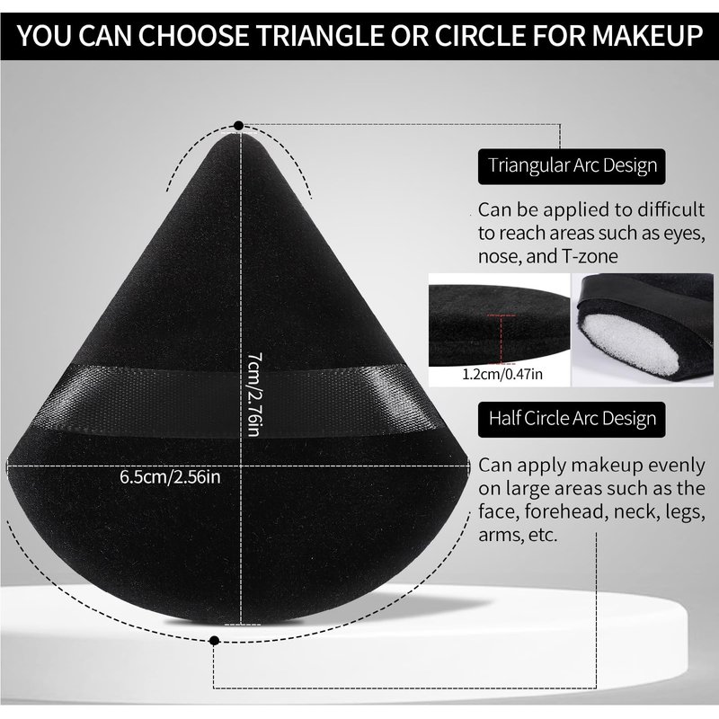 - Design: our powder puff is actually designed with triangle and circle style, when you put the foundation on your cheeks and forehead, you can use the round side, when you put foundation on the eye and contour, you can choose the triangle side. Say goodbye to uneven makeup!