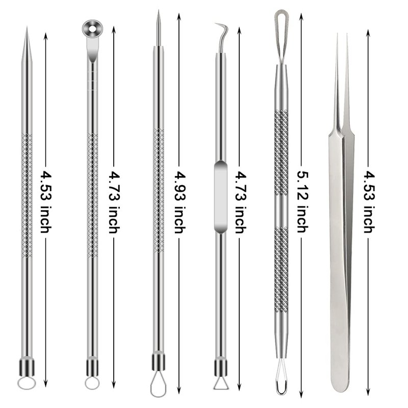 - ⭐ PIMPLE POPPER TOOL KIT - Perfect combination 6 in 1 different black head remover tool can help to remove blackheads, whiteheads, acne, blemishes, splinters and zit popping on your chin, cheek, forehead body.and nose easily.