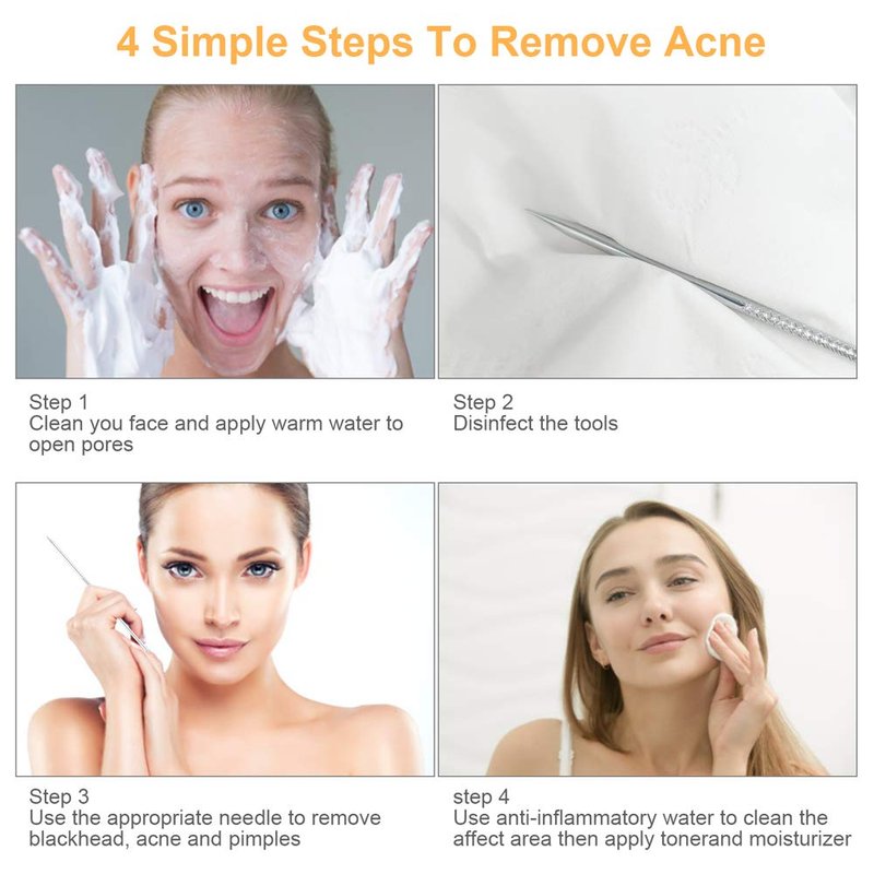 - Multi functional set: our pimple popper tool kit comes in different size blackhead remover tools to help us remove blackheads, acne and zit popping on your chin, cheek, forehead and nose easily, increase your confidence and beauty every day
