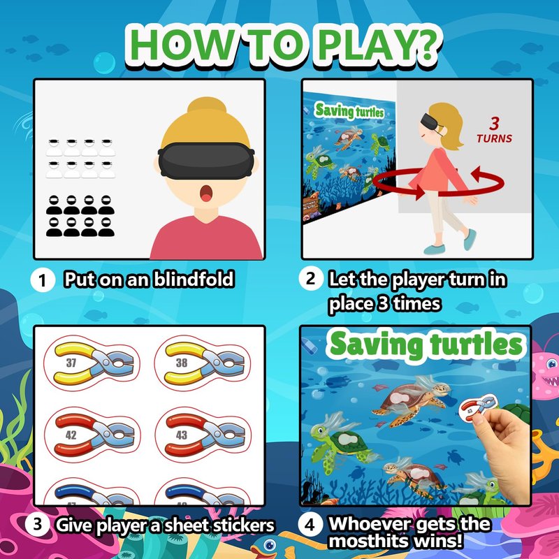 - Ocean Theme Party Decorations - Turtle party games will be an absolute hit at your kids' party. Whether it's a birthday party, family gathering, boys' birthday party, kids' games, christmas party, thanksgiving party or any other event, this game is suitable. After the party, the farm animal poster can be used as decor the wall and room, preserving the good memories of the party.
