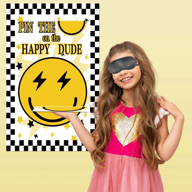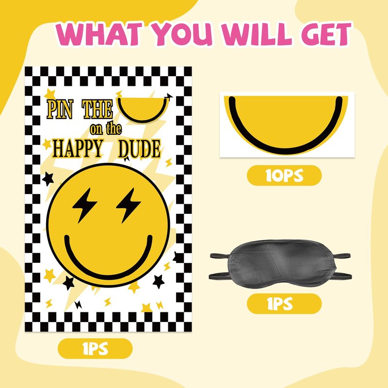 - 【ONE Happy Dude Party Game】The package comes with 1 face poster, 10 stickers and 1 blindfold.Great games for any themed parties such as birthday parties, festive parties and school activities.