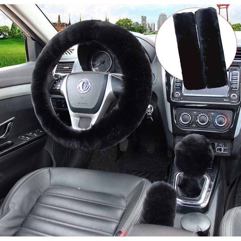 - Package Contents:1 set 5 pcs (1 PC Woolen Steering Wheel Cover,1 PC Shift Cover,1 PC Handbrake Cover,2 pcs Seatbelt Shoulder Pads for Armrest)