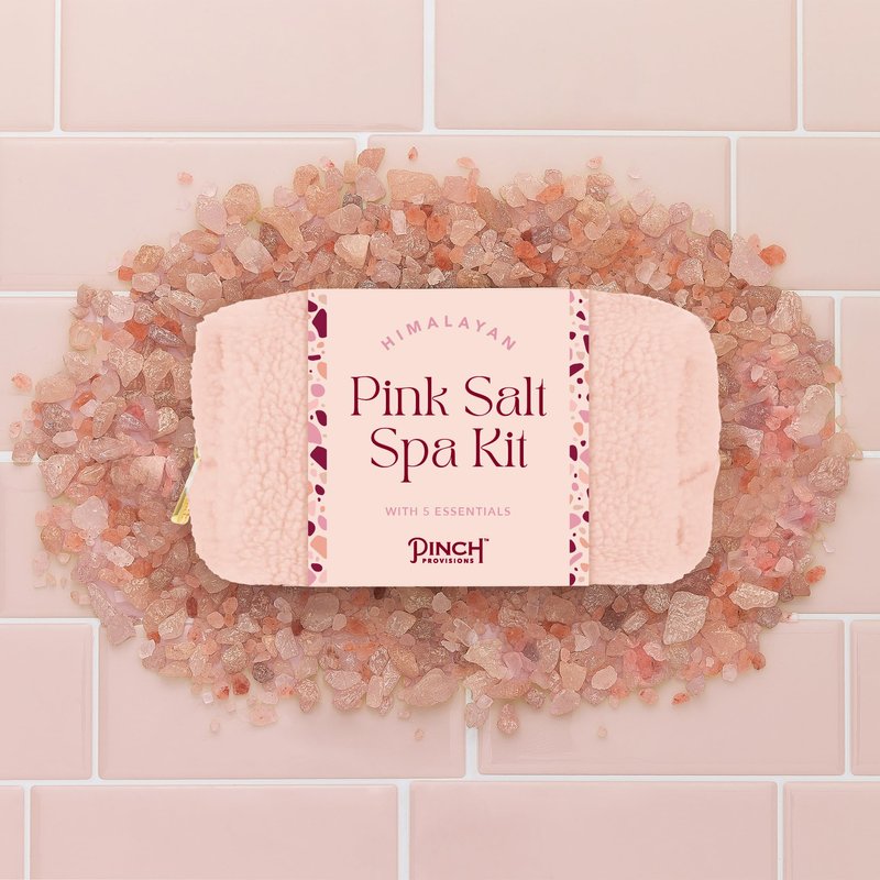 Pinch Provisions Himalayan Pink Salt Spa Kit, 5 Spa Essentials for Self-Care & Beauty, Multi-Functional Cosmetic Bag, Includes Facial Massager & Exfoliating Glove, Spa Set Gift
