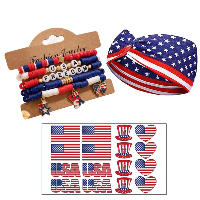 - ❤The Red White and Blue Accessories set includes an American Flag Headband, red white and blue bracelets set, and a American Flag Stickers. A set of Fourth of July decorations will satisfy all your needs.