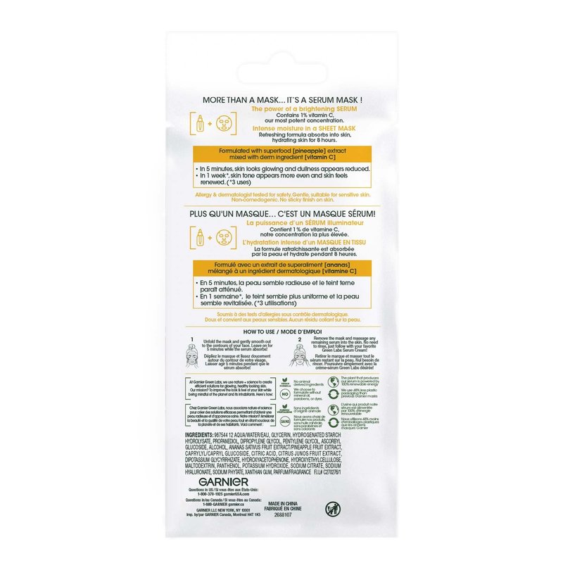 - Brightening Serum Mask: Contains vitamin C and pineapple to brighten skin