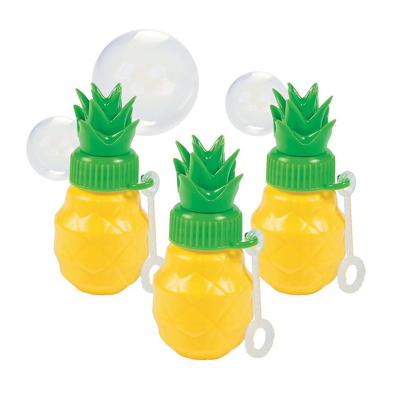 - Add a pop of pineapple to your next outdoor event. Perfect for luau party supplies these Pineapple Bubble Bottles are small enough to fit into favor bags and are sure to be a sweet hit with both kids and adults. Beach bums pool goers and fruit fanatics will love how these bubble bottles instantly take them to their tropical happy place. Sure bubbles are fun but they're even better when they invoke visions of palm trees swaying in the breeze.