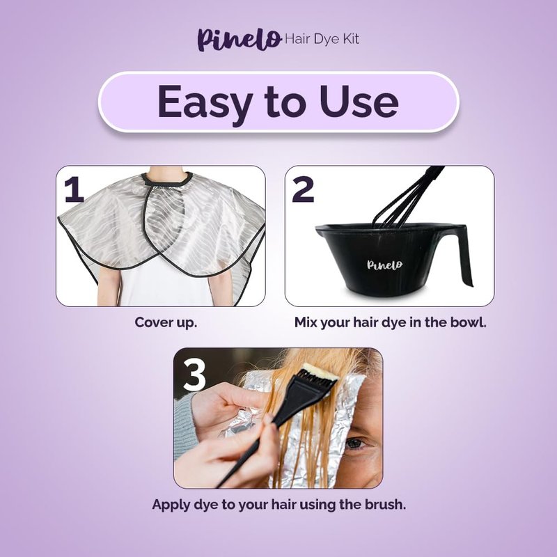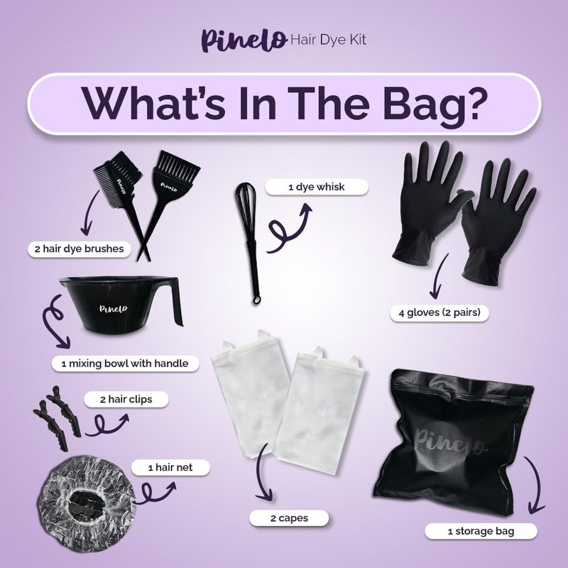 Pinelo 14-in-1 Hair Dye Kit - Complete Hair Coloring Kit with Color Mixing Bowl, Brushes, Clips, Disposable Gloves, Mixing Whisk, Storage Bag - DIY Highlights, Professional, Hairdressing Supplies