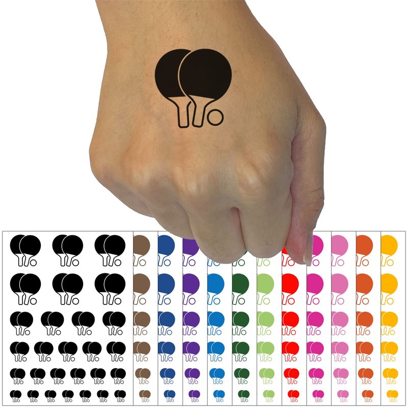 Ping Pong Table Tennis Paddles and Ball Temporary Tattoo Water Resistant Fake Body Art Set Collection - Brown (One Sheet)
