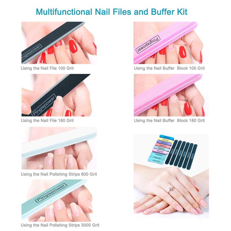 - 【Multiple Usages】These nail file and nail buffer kit are suitable for fingernails, toenails, natural nails, acrylic nails and false nails, fit for girls or women who like nail art, can be used multiple times, diy yourself freely as like at salon. Not need spend more money in beauty salon.
