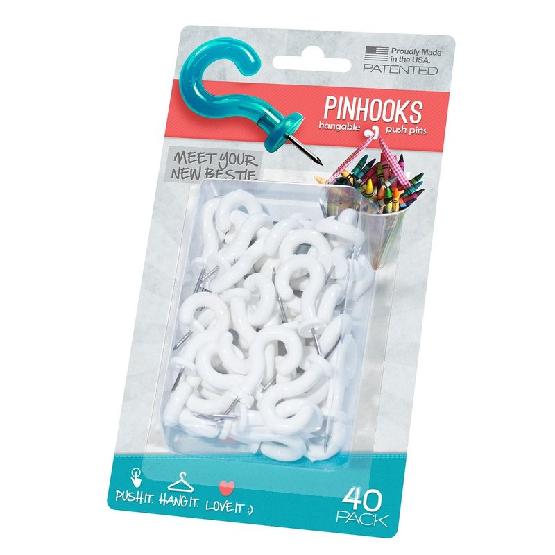 Pinhooks Value Push Pin 40-Pack Wall Hooks, White