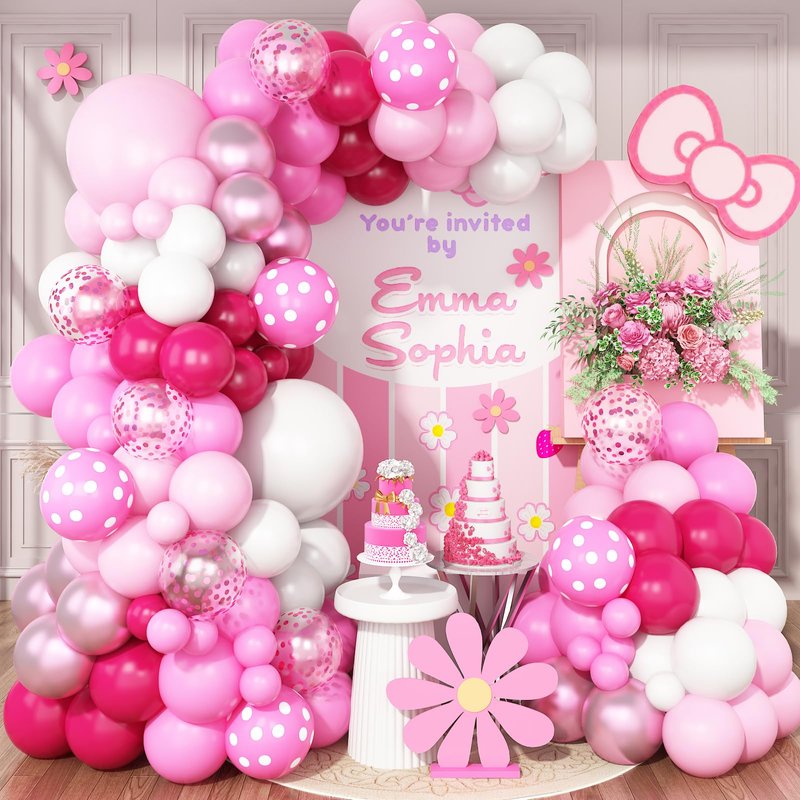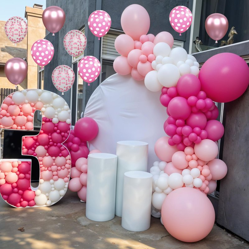 - 【Balloon Kit Includes】 Pink balloons arch kit includes: 26 pastel pink balloons, 26 white balloons, 20 pink balloons, 15 hot pink balloons, 15 metallic pink balloons, 8 pink confetti balloon, 5 polka dot balloon, 5m balloon chain, balloon dispensing glue, 10m balloon ribbon.