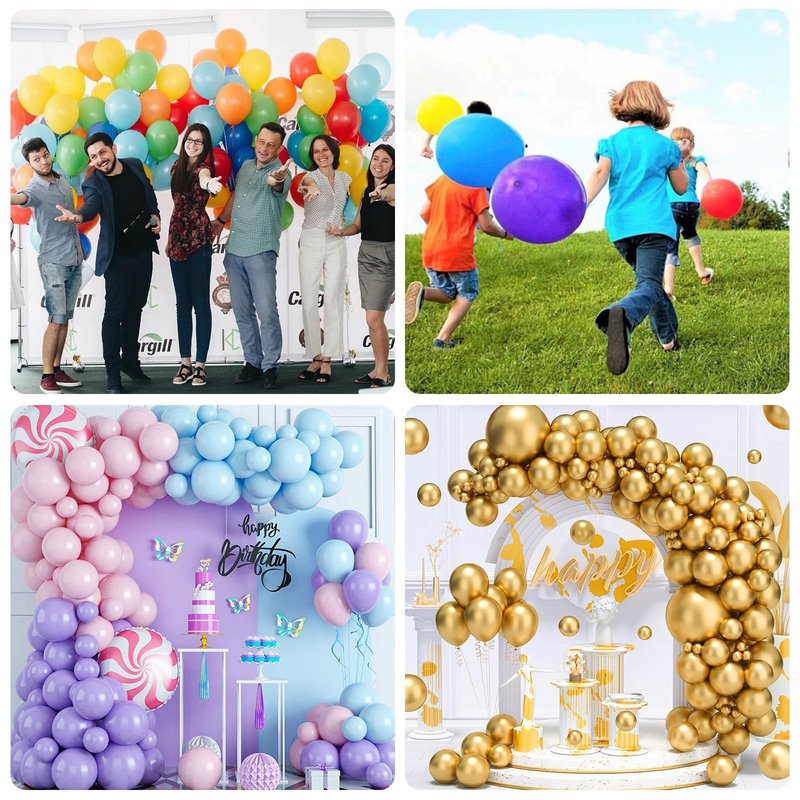 - 💃BALLOONS FOR PARTY DECORATION: Whether it is a small party or a large event, balloons are always the most classic party decoration supplies. You can combine different colors and sizes of balloons together to form a certain shape, such as hearts, rainbows, stick the combined balloons or scattered balloons on the walls doors and stair railings, or use the balloon arch kits to combine the balloons into a beautiful balloon arch. Balloon decorations make your party exceptionally beautiful!