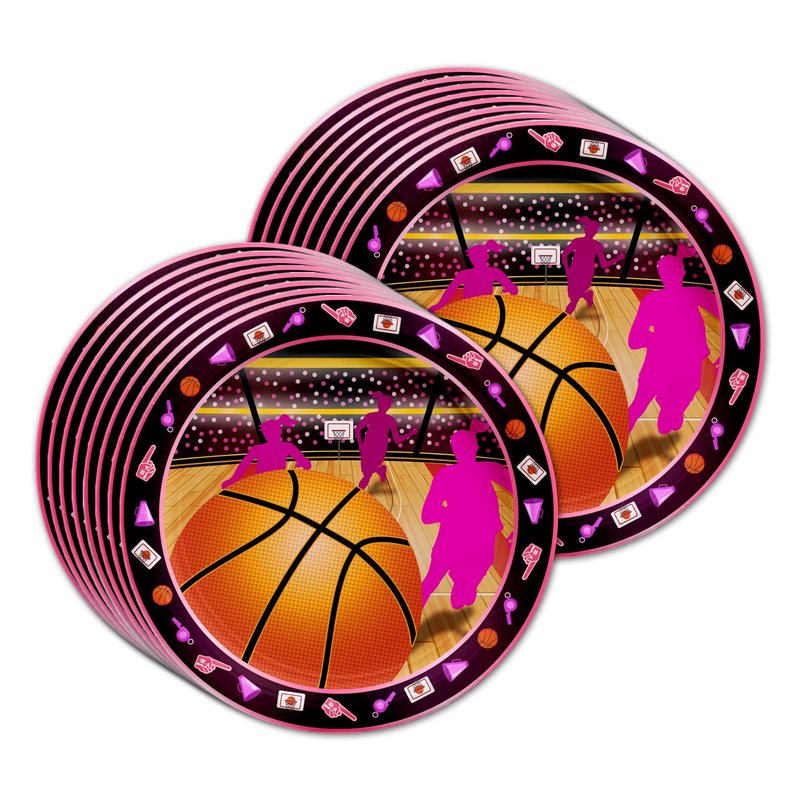 Pink Basketball Girl Birthday Party Supplies Set Plates Napkins Cups Tableware Kit for 16