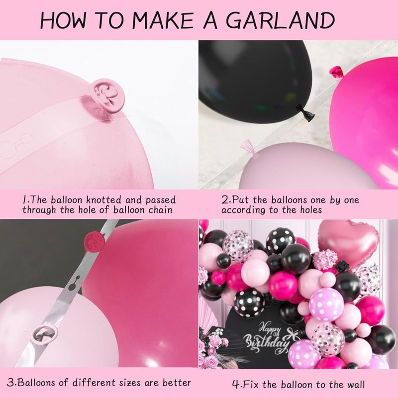 - Premium Material: Our mini pink black balloon arch are made of premium materials, ensuring long-lasting bright colors that will stand out at your event. They are easy to inflate and hang, making your party planning stress-free and enjoyable.