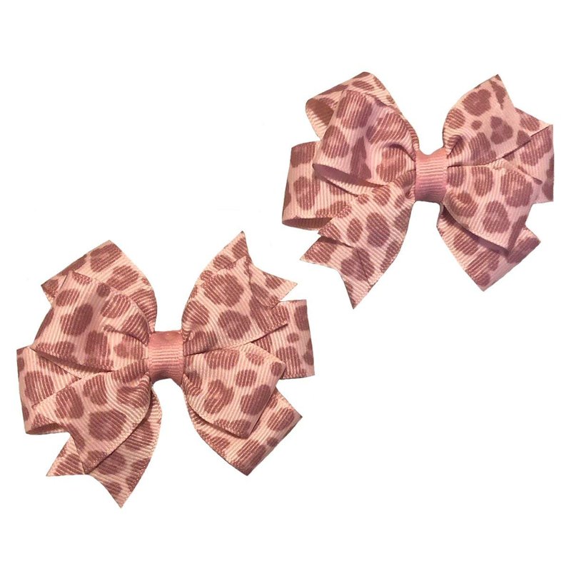 These bows come 2 in a set. They can be mounted on small french barrettes OR partially lined alligator clips. Each set consists of one bow for the right side of the head and one bow for the left side of the head. Each of these bows measure 3.5 inches wide by 3 inches high.
