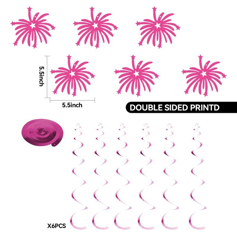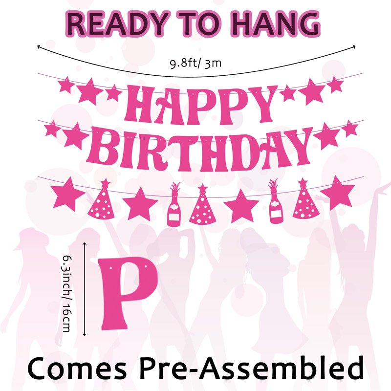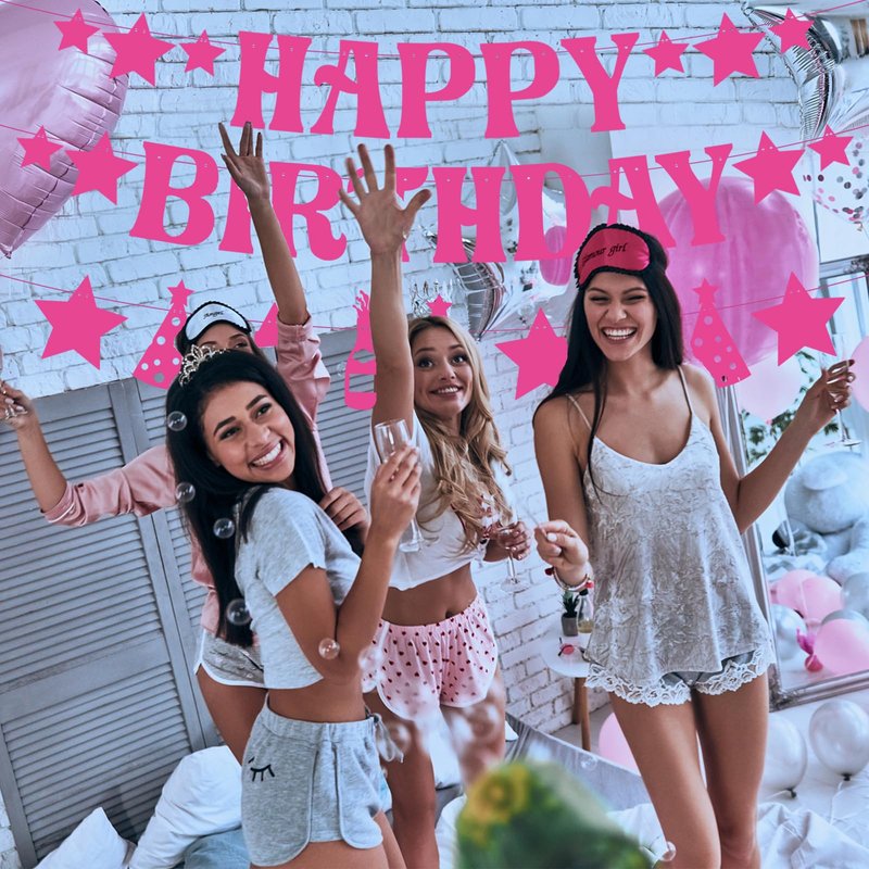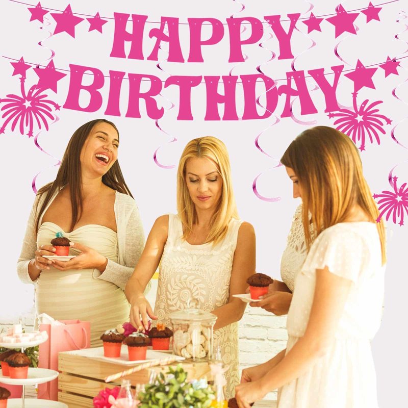 - Package: You will receive 7 hot pink birthday party decorations, 1pcs Pre-Strung "HAPPY BIRTHDAY" banner, 1pcs decoration banner and 5pcs hanging decorations. Exquisite pink decoration brings you the best birthday wishes.