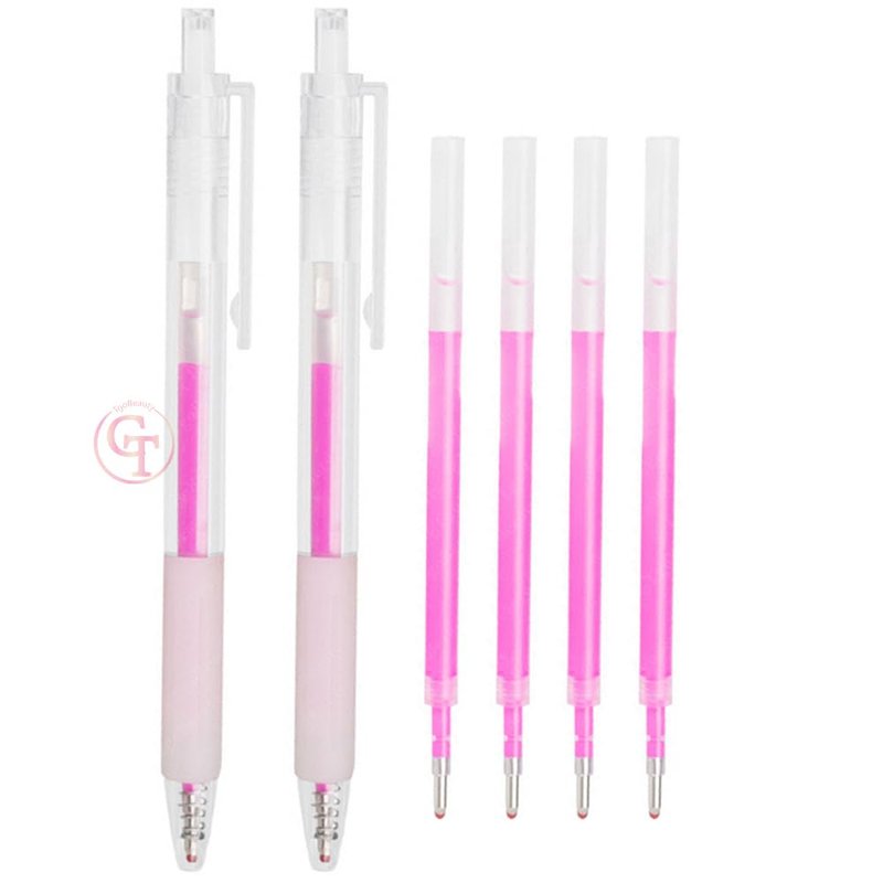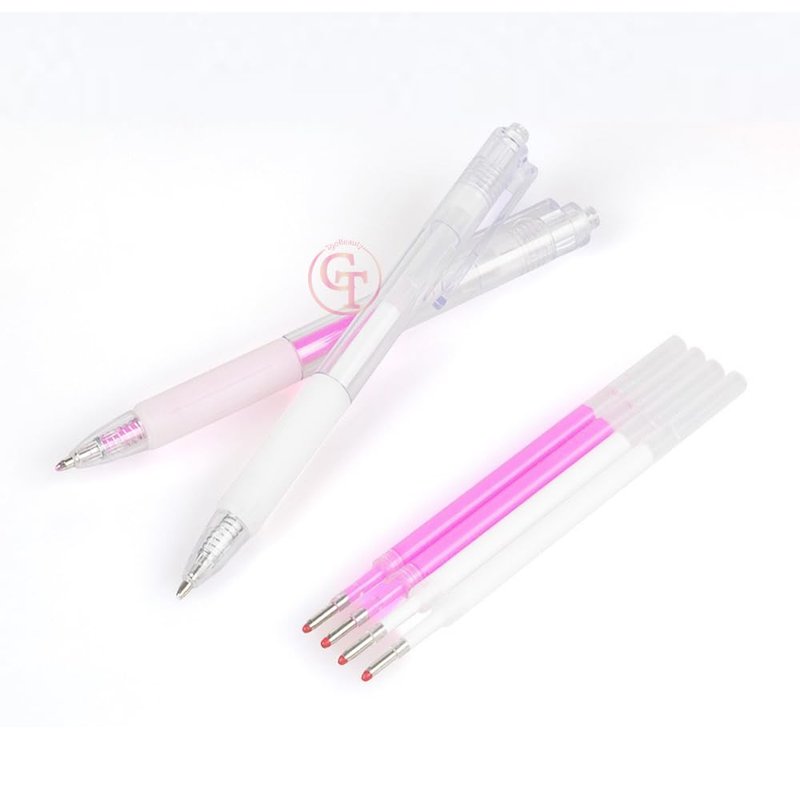 Feature: easy carry and convenient use,Waterproof and sweatproof, long lasting. Application:Multiple uses for eyebrows, lips, earrings, skin markings, skin positioning, and so on. Package Included:2 core pens and 4 replacement refills for a total of 6 usable refills