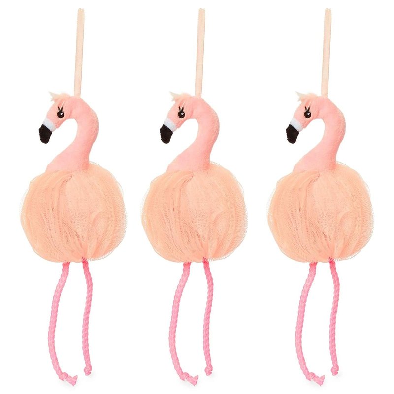 Pink Flamingo Loofah Bath Sponge Body Scrubber (3.5 x 11.5 In, 3 Pack)
