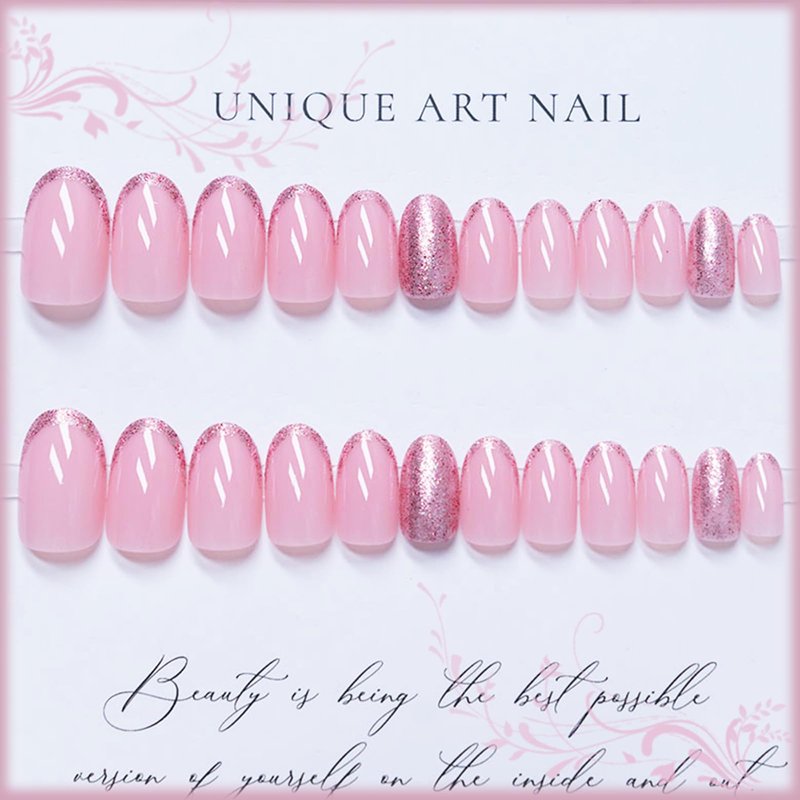- 【High-Quality Gel Formula】 Sparkly almond full cover stick on nails are made of high quality ABS material, which are flexible, durable and sturdy. Bright gel glossy finish make the nails shine and stylish. Not easy to fade color, fall off or break. Simple artificial nails can last 1-2 weeks with strong nail glue.