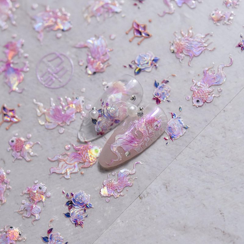 - Package Contain: A pack contains 1 sheet delicate pink kio fish nail stickers,can be used for nail decoration
