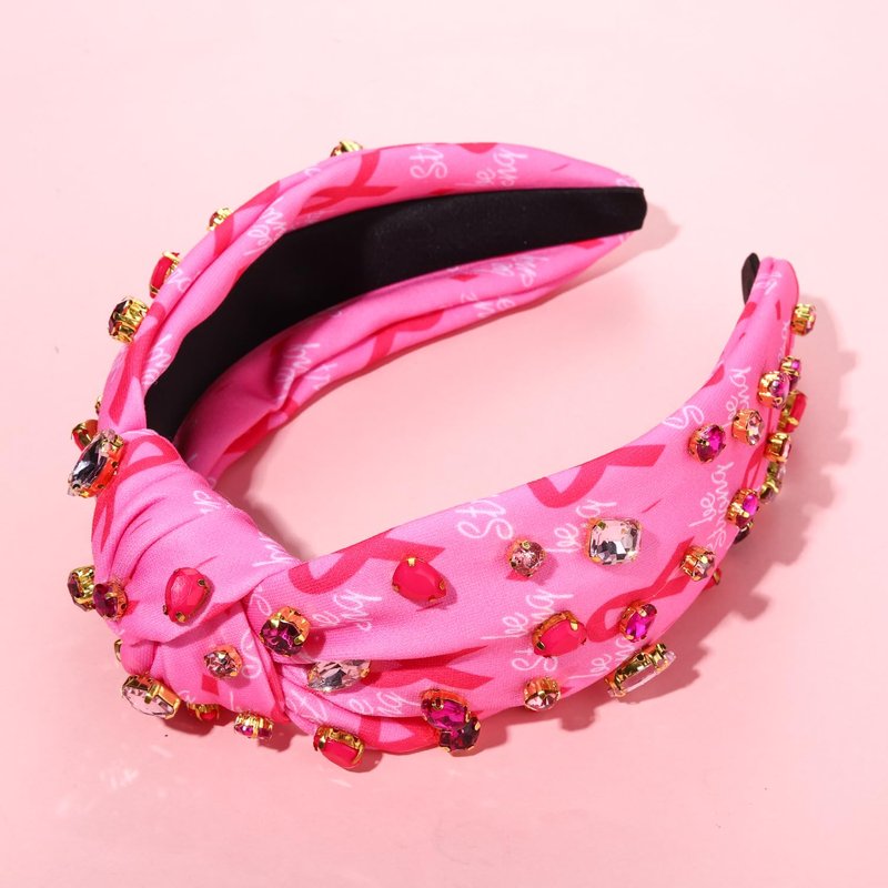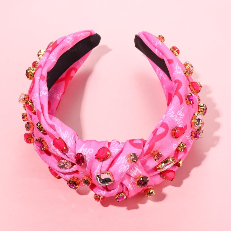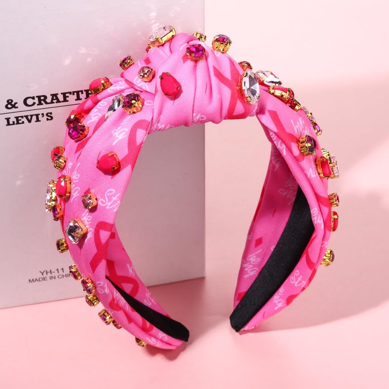 - Handmade Womens Pink Headband :This beautiful, handmade Hand Beaded Pink Ribbon Knot Headband is perfect for Breast Cancer Awareness. Lightweight and crafted with a heart pink ribbon , rhinestone text FRIGHT letter and crystal metal beads emebllished, it's a stunning accessory to show your support for and honor those who have been affected by this disease.