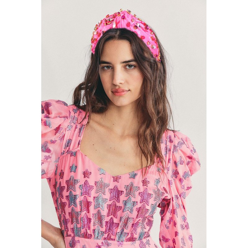 Pink Knotted Headband Sparkly Rhinestone Breast Cancer Awareness Knot Headband Crystal Jeweled Pink Ribbon Fright Beaded Twist Hairband Headpiece Breast Cancer Awareness Hair Accessories Gift for