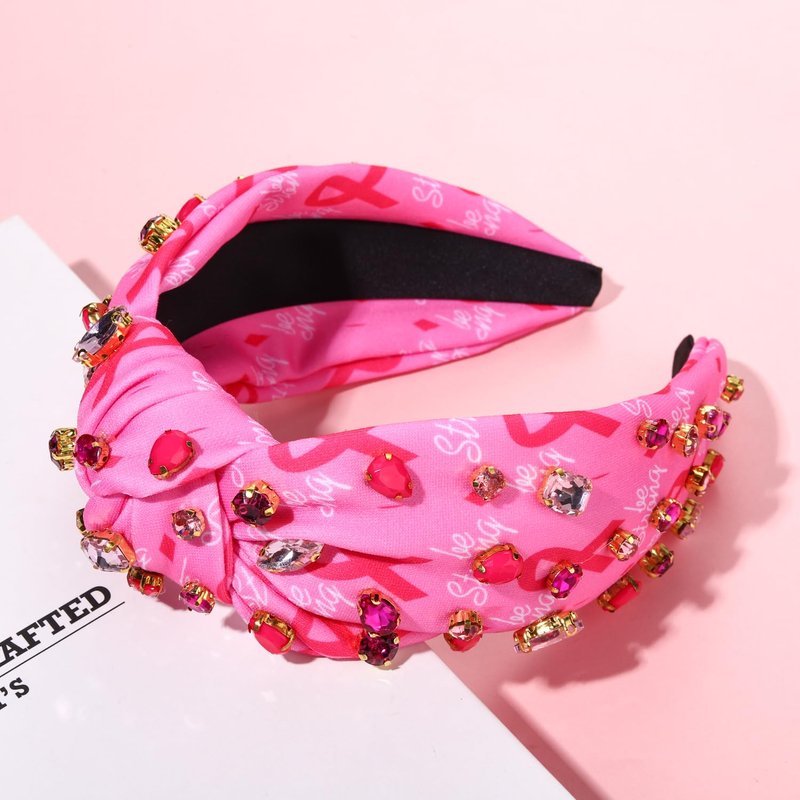 - Pink Ribbon Knot Headband :the pink ribbon design knot headband aim to deliver an awareness of breast cancer for people, by wearing it, you can demonstrate your support and attention on breast cancer research and show your care for those in need during breast cancer awareness month.Wear your support for breast cancer awareness proudly with the Pink Headband! Great giveaways at fundraisers, awareness events and fun runs, these headbands will look great and stay in place all day long.