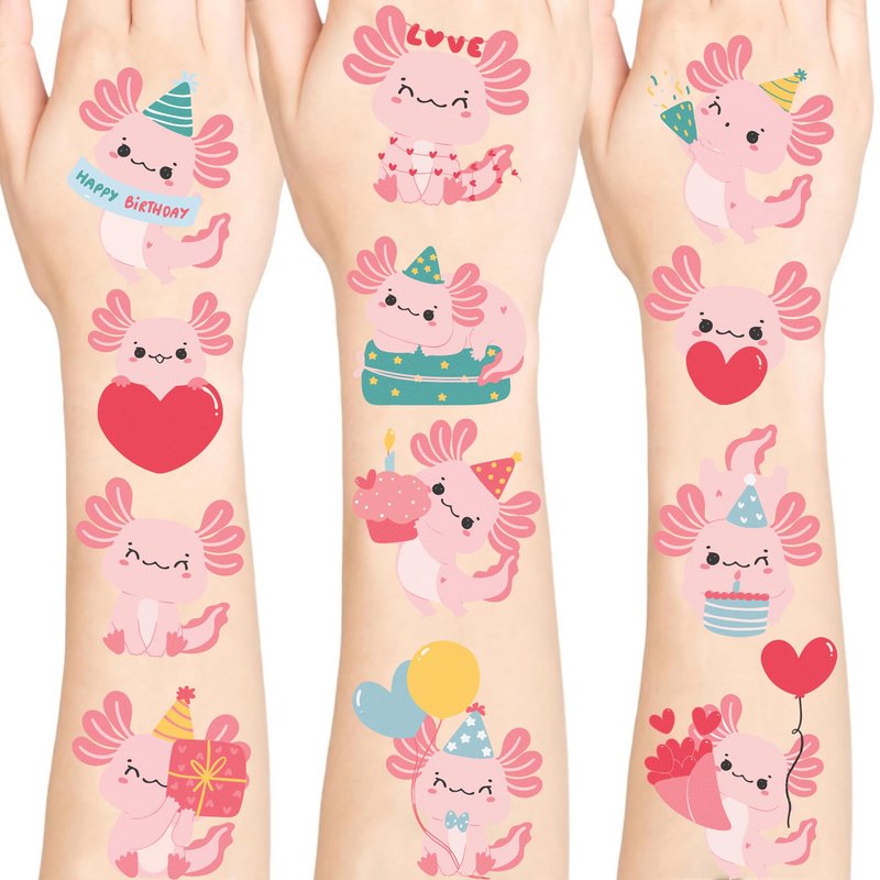 Pink Lovely Axololt Temporary Tattoos, Waterproof Temporary Tattoo Stickers for Birthday Decorations, Party Supplies Party Favors, School Rewards Gifts