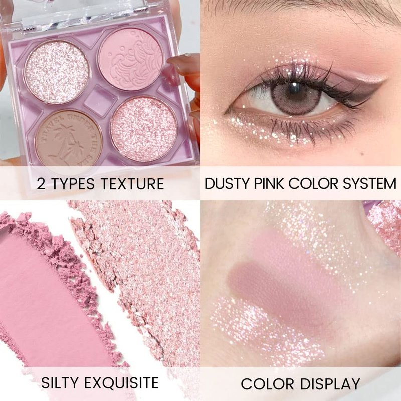 Pink Mini Eyeshadow Palette Glitter Eye shadow Makeup 4 Colors ,Warm Brown Pink Eyeshadow Shiny Sparkle Shimmer Glitter Eyeshadow Waterproof Pallete,sliver Glitter Eye Eyeshadow Make Up (02)