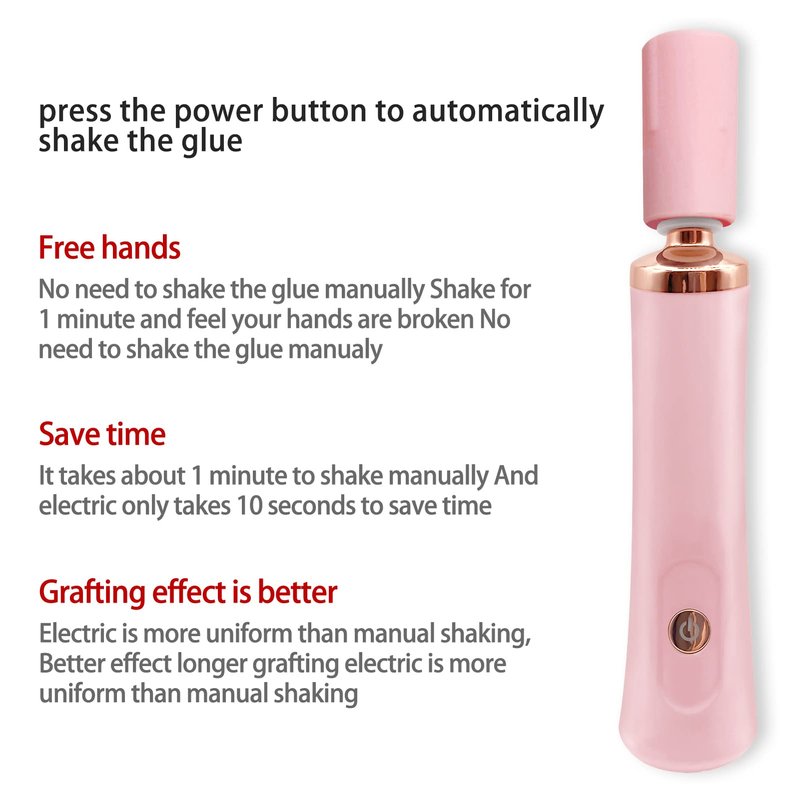 Pink Nail Lacquer Shaker, Nail Polish Mixer, Portable Electric Eyelash Glue Shaker with 2 Connectors and 8 Sizes of Caliber Liquid Evenly Mixer for Eyelash Extension Lash Glue Ink