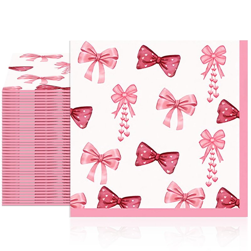 Pink Napkins 40PCS Pink Bow Napkins Coquette Birthday Decorations Bachelorette Party Disposable Beverage Napkins for Bridal,Engagement,Baby Shower,Girls Birthday,Bow Theme Birthday Party Supplies