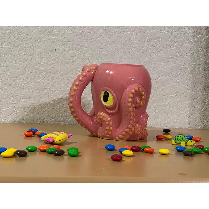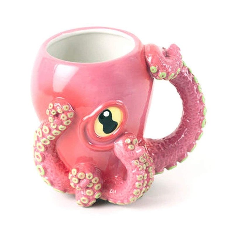 Pink Octopus Ceramic 3D Coffee Mug with Tentacle Handle