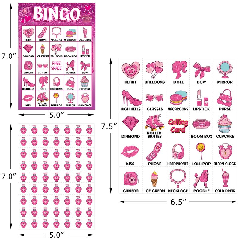 - Package Includes: 24 pink party bingo game cards, 441 perfume bingo card chips, 24 call out cards; 7 x 5 inches player cards; Easily cut along dotted lines of chips sheets and calling card sheet