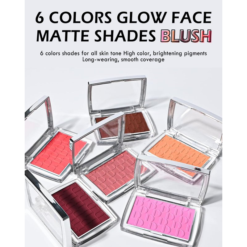 - MATTE POWDER BLUSH PALETTE - A silky, ultra-fine, colorful blush that provides buildable color for every skin tone. This blush collection is created for all skin tones - from light to medium to dark skin tones, complimenting a wide range of makeup styles. These six rich colors will provide you with a glamorous matte natural blush shade that adds a girly vibe to the overall look and easily maintains all-day glamour. The micro-powder ensures excellent blending and a true matte finish.