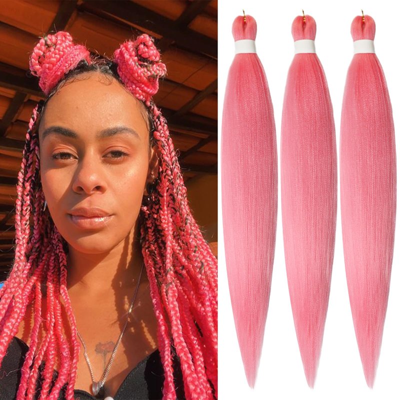 Pink Pre stretched Braiding Hair, 26 Inches Kanekalon Box Braids Hair Extensions, 3 Packs Yaki Texture Braiding Hair Pre stretched