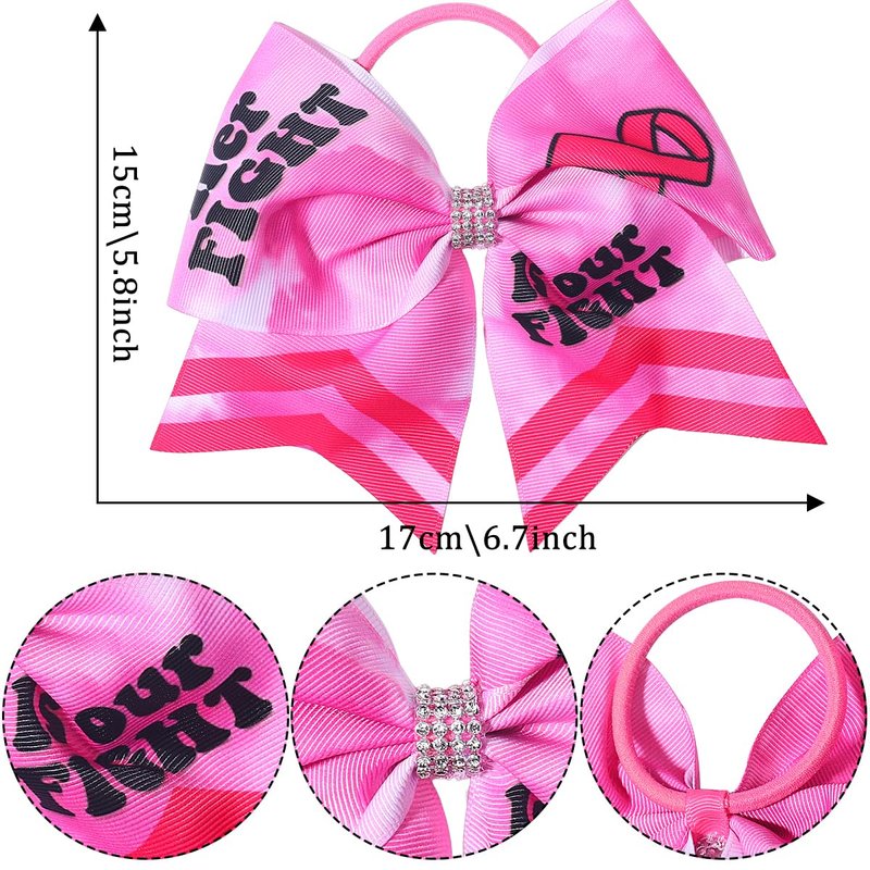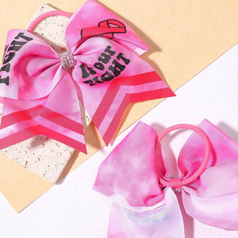 Pink Ribbon Cheer Breast Cancer Awareness Cheer Bows Ponytail Holder Hair Bow Printed Cheerleader Elastic Band Hair Bow Hair Band Handmade Hair Access for Women 2PCS