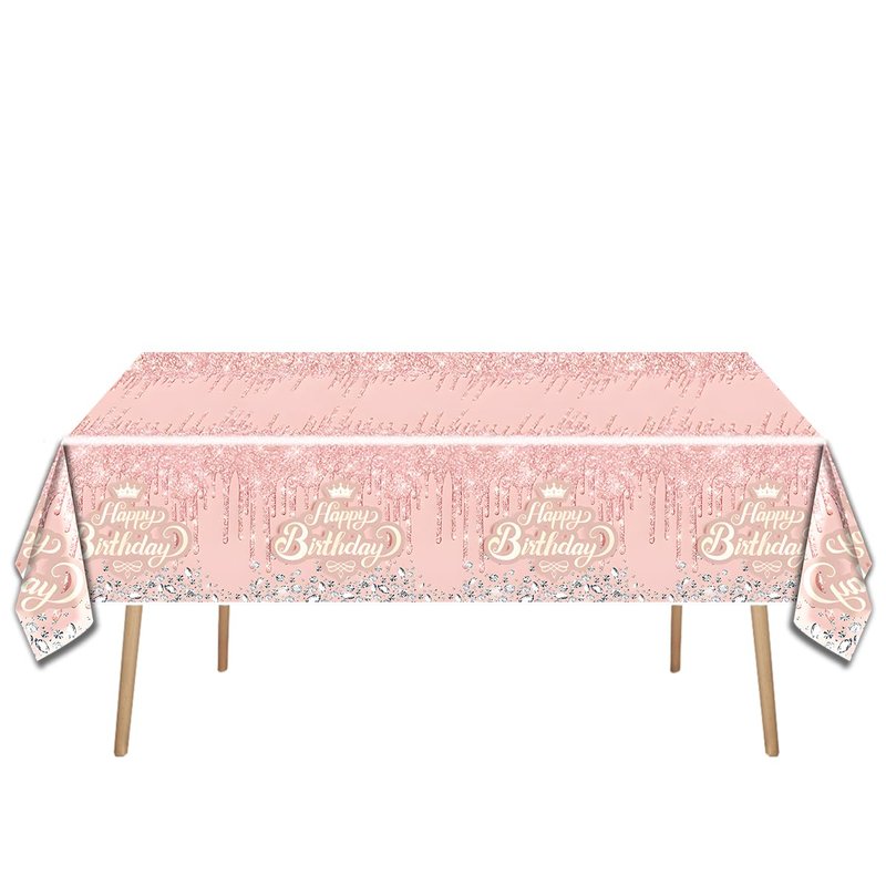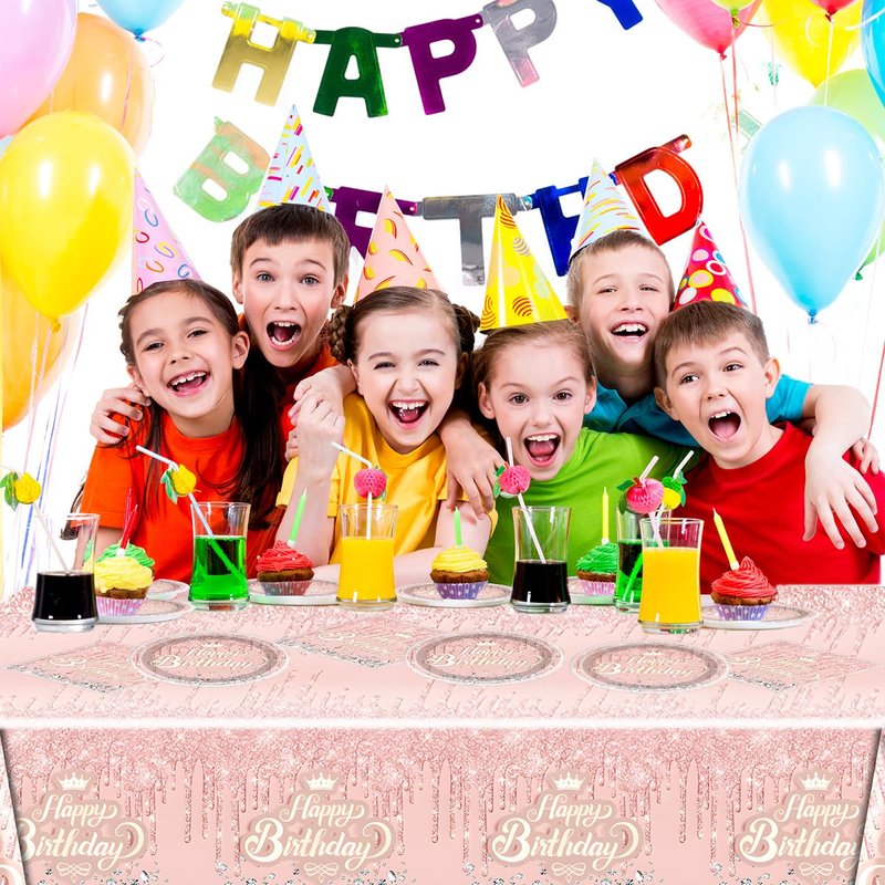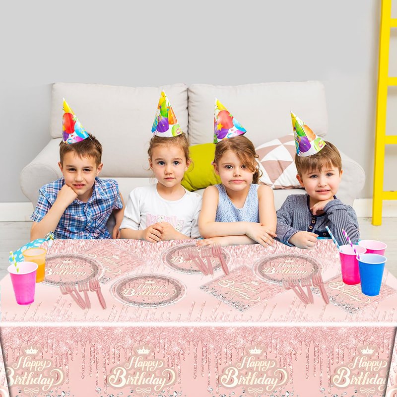 Pink Rose Gold Party Tableware set,Pink Happy Birthday Theme 20 Plates and 20 Napkins and Tablecloths 71 '' x 42 '' for Girls Women Silver Glitter Birthday Party Supplies