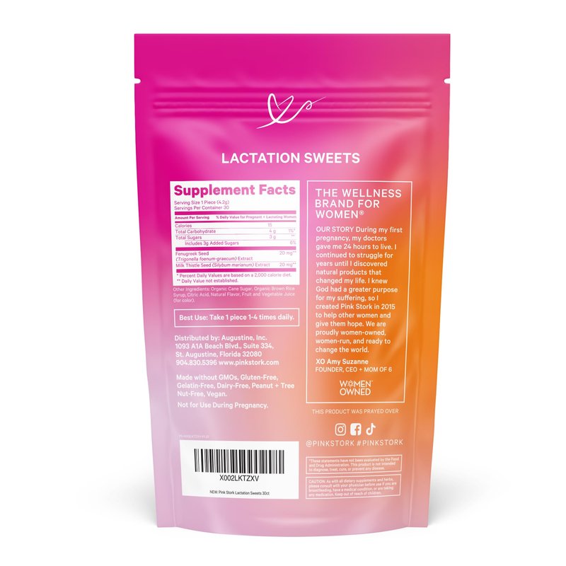 - Over half of nursing and pumping moms experience breastfeeding difficulties, and many struggle to make liquid gold for their babies. Pink Stork Lactation Sweets combine Fenugreek and Milk Thistle for sweet postpartum lactation snacks to support breast milk supply. Not any ordinary breastfeeding supplements - each lozenge is individually-wrapped and irresistibly tasty.