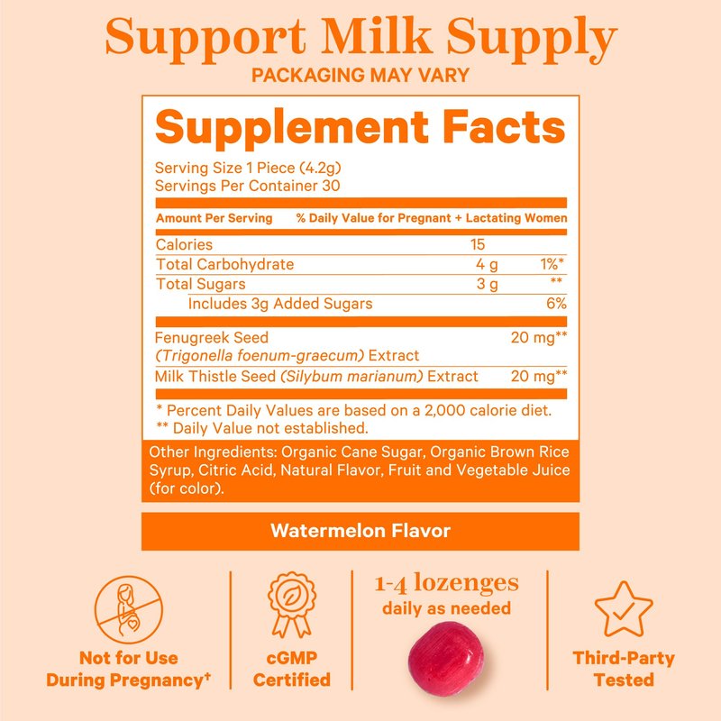 Pink Stork Lactation Sweets Supplement, Breastfeeding Snacks with Fenugreek and Milk Thistle to Support Breast Milk Supply - 30 Watermelon Candy Drops (Packaging May Vary)