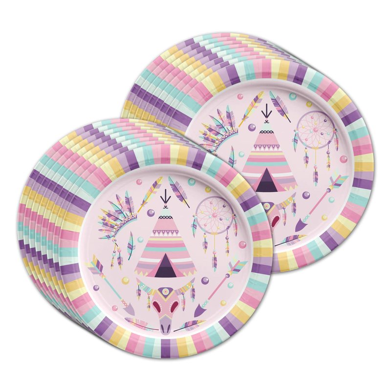 - PREMIUM DESIGN - Our Pink Tribal Boho Themed Party Supplies are suitable for girl’s and boy’s birthday parties, holiday celebrations with your family and friends, special events or for just fun-filled daily meals, snacks, and desserts with picnics and cookouts. Shrieks of joy will be your reward when you use these fun and unique party tableware sets.