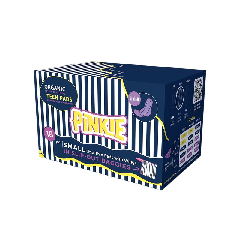 Pinkie Period Pads for Tweens & Teens - Designed for Smaller Underwear - Organic Cotton Topsheet Teen Pads with Wings - Chlorine Free - Teen Small, 18 Count
