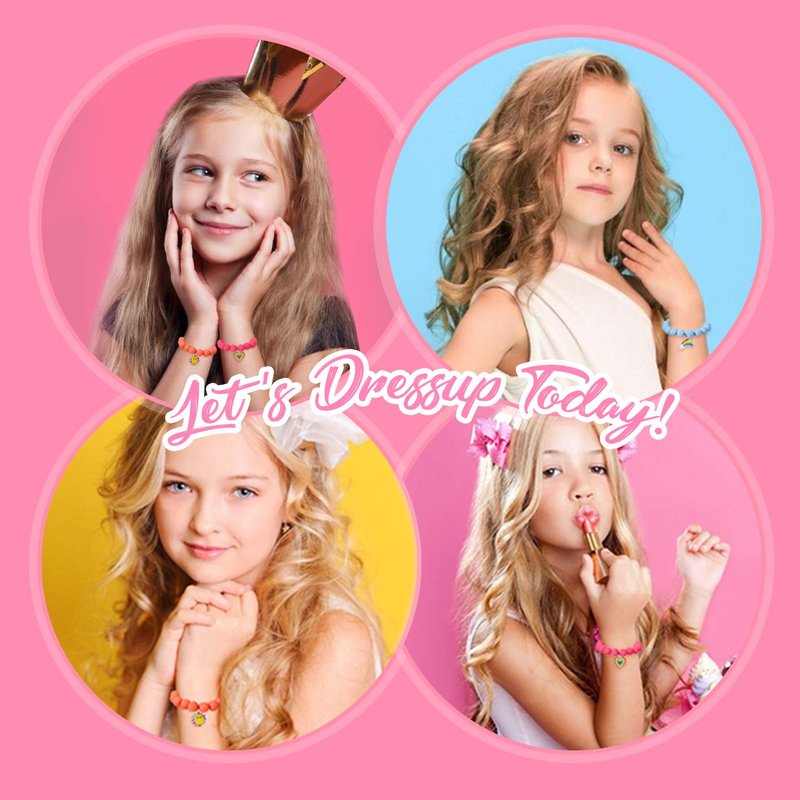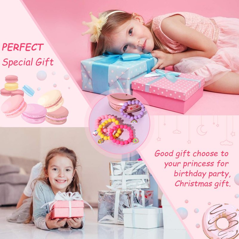 PinkSheep Unicorn Beads Pendant Bracelet for Kid Girl, 6PC, Rainbow Monster Sun Flower Heart Meteor Charm Friendship Bracelet Good Friend Gift