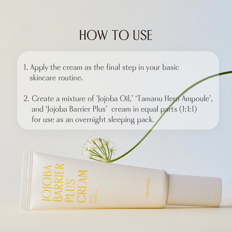 PINKWONDER Jojoba Berrier Plus Cream 1.69oz(50ml), 24HR Long Lasting Moisturizier Face Cream, Jojoba Oil and Hyaluronic Acid for Dry Skin, Korean Skin Care