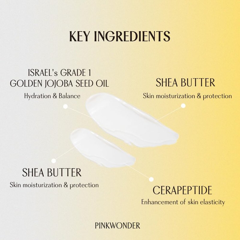 This is a highly Jojoba moisturizing barrier cream that is packed with the energy of Israeli Golden Jojoba Seed Oil and extracts obtained directly from nature. After years of research, PINKWONDER has developed a resilient texture that smoothly penetrates the skin upon application, providing care from within for healthy and clear skin.