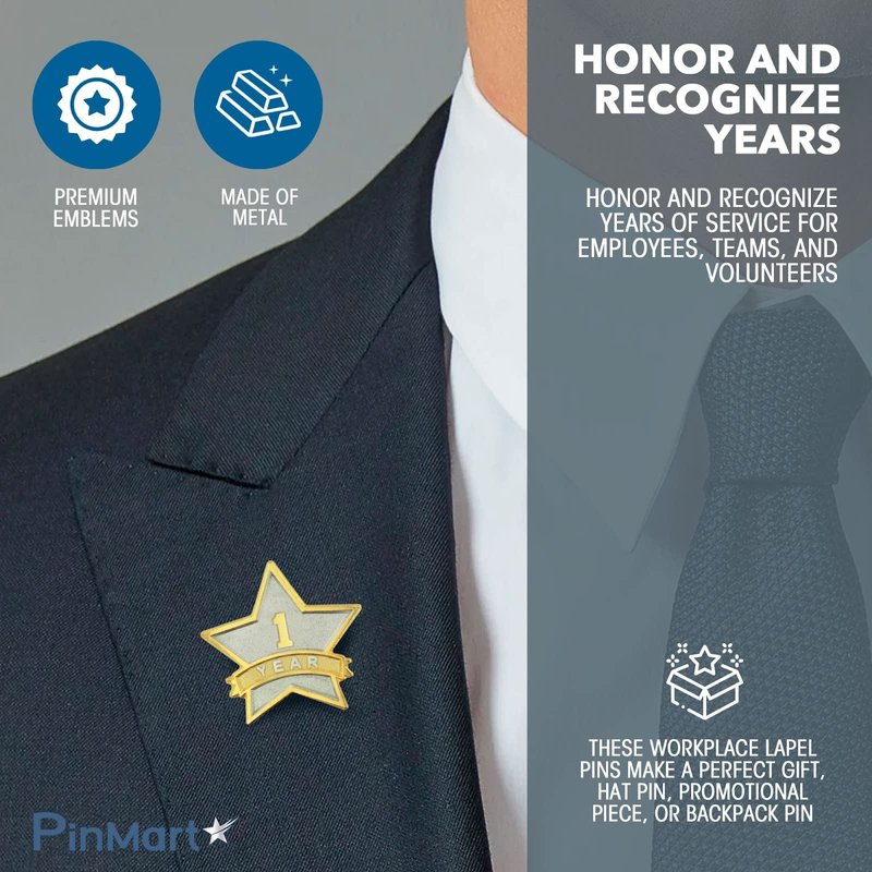 PinMart Year Service Award STAR Lapel Pin – Gold- & Silver-Plated Metal Workplace Reward Pin – 1-30 Years of Service Star Pins for Long Standing Employees or Volunteers