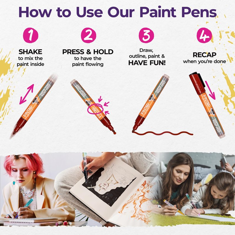 - Seamless Artistry, Straight From Nature: Simply shake, press the medium tip until the ink flows and immerse yourself in the artistic process. With Pintar's earth tone paint pens, you'll experience the tranquility of nature’s colors without the fuss of traditional paints.