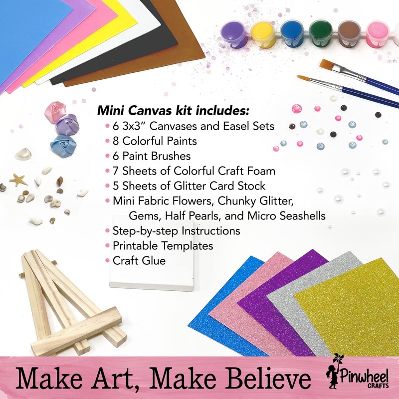 - MINI CANVAS PAINTING KIT: Our big bundle value pack painting set includes 6 tiny 3” x 3” stretched canvas boards for painting crafts with kids. Each miniature artist canvas comes with a sturdy wooden painting easel, so you get 6 small canvases & 6 wood easels for painting!