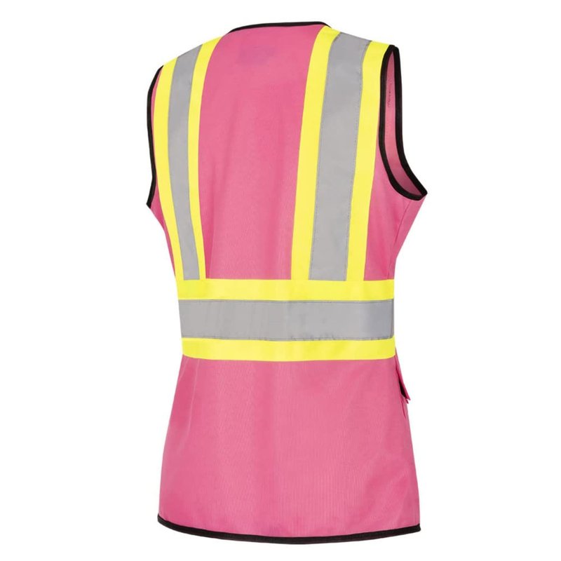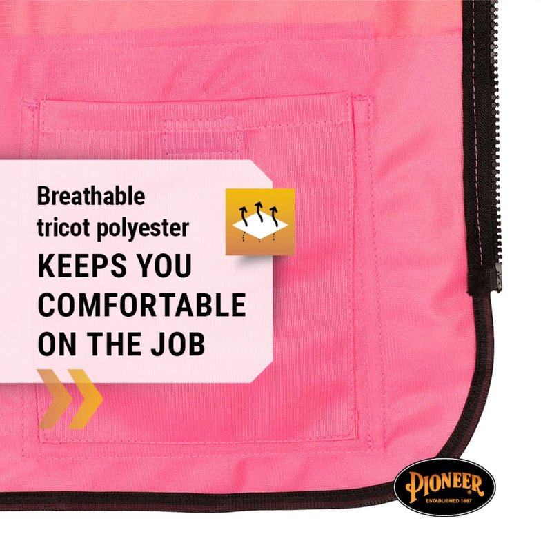 Pioneer Safety Vest for Women with Pockets - Hi-Vis Reflective Tape - for Construction - Pink