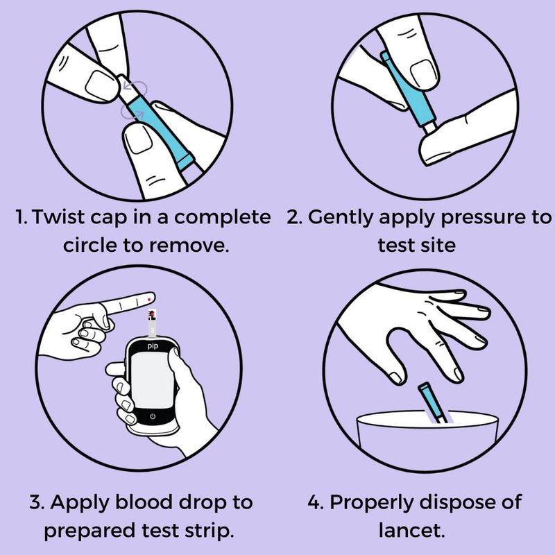 Pip 100 Lancets | All-in-One 30G-1.6mm Diabetes Safety Lancets | Sensitive Fingerstick Testing for Blood Sugar & Ketone Monitors