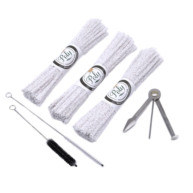 Pipe Cleaners Tool Set for Glass and Pipe Smoking | 132 Hard Bristle Pipe Cleaners, 2 Nylon Bristle Brush, Tamper Tool